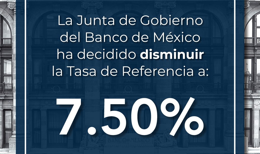 La Junta de Gobierno del Banco de México (Banxico) anunció la reducción en 25 puntos base del objetivo para la Tasa de Interés Interbancaria a un día, situándola en 7.50%. Esta medida entrará en vigor a partir del 26 de septiembre de 2025 y forma parte de la estrategia de política monetaria orientada a mantener la estabilidad macroeconómica y controlar la inflación.